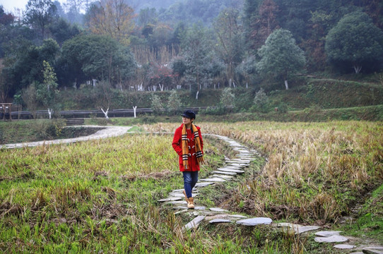 傩舞表演位于“打谷场”,打谷场前一片稻田,其中是石头小路蜿蜒穿越,想来如果这是丰收季节,大概会非常美丽。
