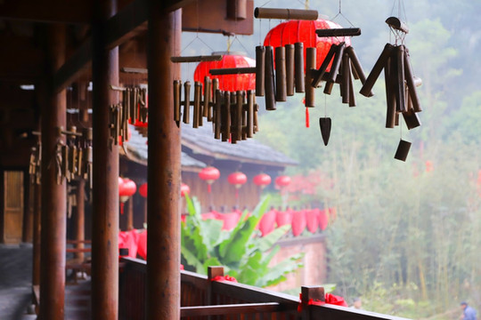 乍看寰楼让我想起了客家“围屋”,一个大环形结构,木质主体配上 中国 特色的红灯笼,特别抢眼。