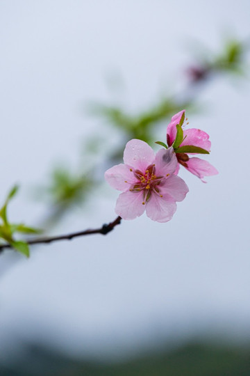 五柳湖畔的桃花开的很好,即便有雨水来袭也在坚强的盛开之中。不信你看,我就找到了一朵长得十分标准的桃花。