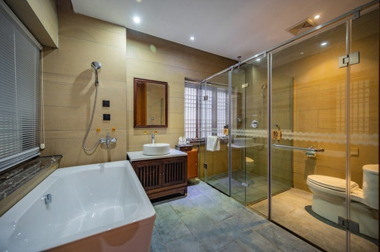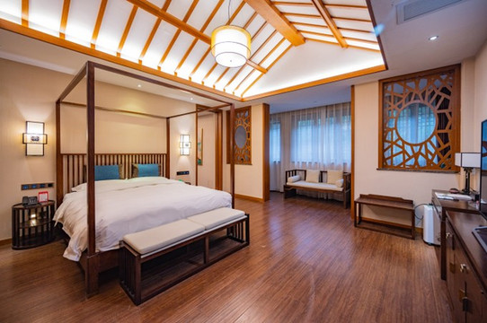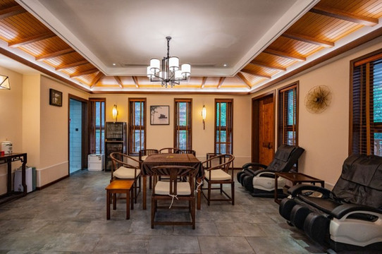 六艺湾度假酒店的客房是一栋栋的木屋,像别墅一样的建筑,每一栋别墅里又有若干的房间。新中式的装修风格显得温馨有格调,又有些许的禅意在里面。从上、下的组图也不难看出,房间里的设施十分齐全,棋牌桌、按摩椅,甚至还有厨房自己可以加工点简单的食物。