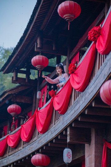 我们来的时间不太对,所以就还是以拍照为主。在这里楠妹也换了一套色彩更加丰富的汉服,与寰楼喜庆的主题就更搭了一些,接着我就是一通快门拍了下面这些照片。