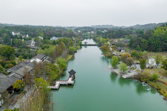 好在我还有另外一个爱好,那就是拍照,尤其是拍好看的小姐姐。这次就给我楠妹拍了许多好看的汉服照片。哪怕是阴天下雨,云雾缭绕的群山反而更能体现出世外 桃源 的意境。我们主要集中的拍摄点有两个,一个是“两山一湖”中的五柳湖畔,一个是秦谷里的寰楼。