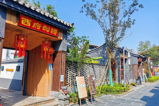 新开园的西府里文化艺术村,集非遗小院、手工作坊、主题博物馆、民宿等于一体的深度体验更是引爆了市民“一站式游西府”的热情。与老街浓浓的烟火气相对,西府里安静而幽深。流线型的户外造型衬托出“西府里”整体的艺术感,穿过门廊,一条乌色石板铺就的小路渐渐延伸,道路两侧绿荫掩映,一间接一间的文化小院比邻而居。绘满脸谱的木质双扇门里是属于社火的传奇世界;木色门牌内的照壁充满神秘感,是民宿“墟里”的另一重院落;竹影摇曳,天空湛蓝,每个角落都是一道风景,是属于“院里私厨”的私享意境……现代书刻、象牙雕刻、文创设计、缤纷博物馆等等琳琅满目,足够文艺而均有体验项目可以亲自尝试。