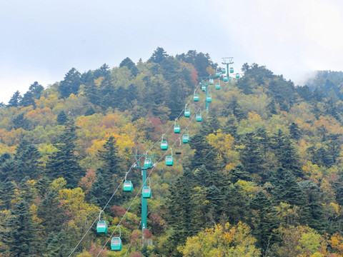 太白山国家森林公园被誉为中国西部的一颗绿色明珠,森林景观、苍山奇峰、清溪碧潭、文物古迹,自然景观与人文景观浑然一体,在这里呼吸每一口空气都是负氧离子。秋日的登山路上,枫叶红,油松绿,红桦橙,冷杉黄,色调清晰,五彩斑斓,站在拜仙台,满山的美景,让人眼花缭乱,目不暇接,不知把镜头先对准哪里。在海拔3511米的天圆地方景点,豁然开朗,广阔无垠的群山尽收眼底,一边是云雾缭绕,一边是金色海洋,蜿蜒盘旋的山路逶迤到天边......宛如浪漫的童话世界。