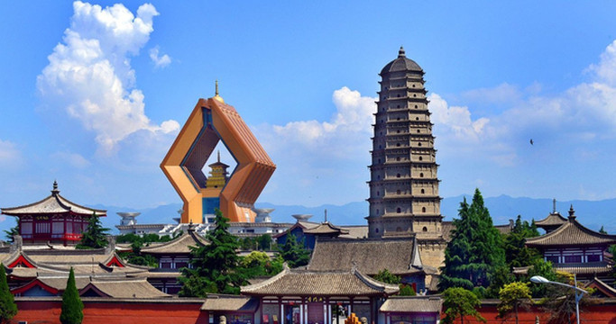 如今的法门寺分为两部分:唐代风格的旧址建筑群(法门寺院和珍宝馆)与令人争议的新建文化景区。看遍法门寺的全部珍宝作为游客,如果想看遍法门寺的全部珍宝,那么旧址的法门寺院内的地宫、珍宝馆以及文化景区内的合十舍利塔等这三个地方都要走一遍,因为三枚“影骨”(用玉石按照真骨的形状和大小而特制的,起到保护真骨的目的)存放在地宫中;出土的唐王朝皇室供佛的珍宝,在珍宝馆内展出;而最为珍贵的“佛指舍利”,则被安放在文化景区最东侧的合十舍利塔内。