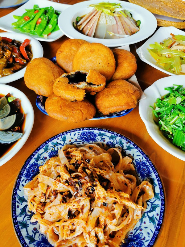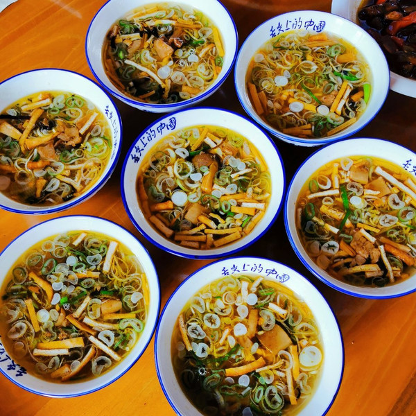 ⭐️亮点推荐:当然来到宝鸡,不能错过经典美味~面条细长,厚薄均匀,面汤油光红润,鲜香浑厚而不腻的岐山臊子面;筋道爽口、百吃不厌的岐山擀面皮;色泽金黄,外脆内韧,嚼之劲道麦香醇厚的豆花泡馍。