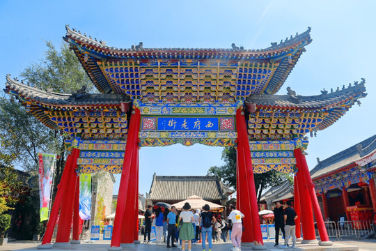 西府老街坐落于宝鸡北坡胜利塬的西府天地民俗观光景区内,周边还有金台观、大唐秦王陵、金顶寺、北首领遗址等景点。来过多次,目的也很单纯,就是为了一站式品尝西府美食,但这次来,除了美食,还想把西府文化一同打包。