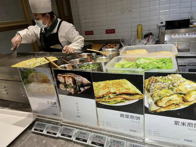 店里面有各种煎饼,吃上一个大煎饼,人就差不多饱了。不得不说,这里的煎饼做出来确实很好吃,里面加的油条味道都很赞。
