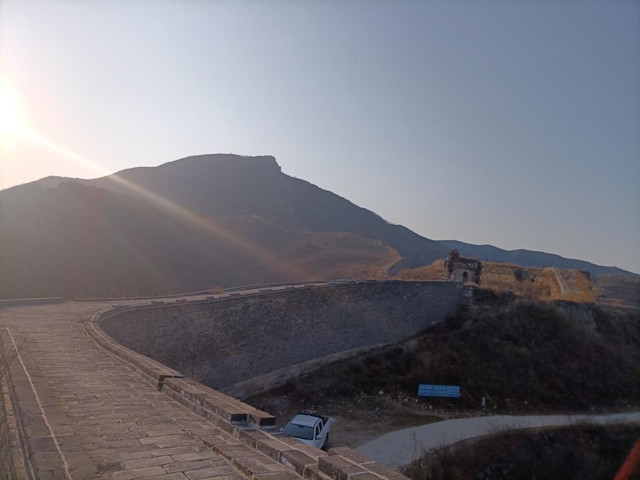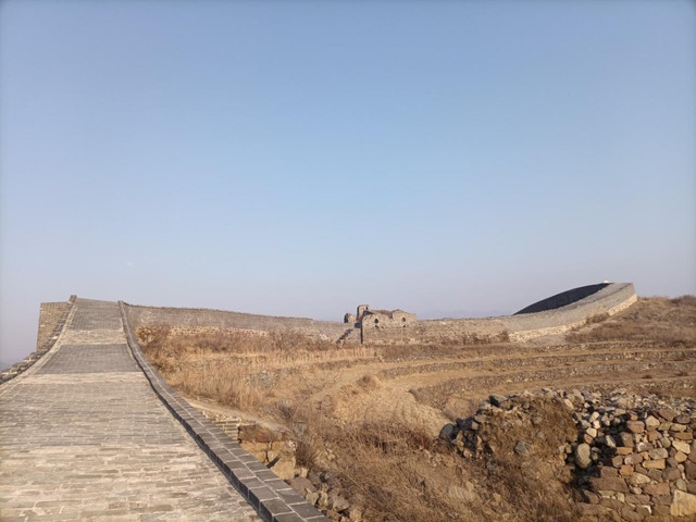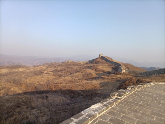 就这样,我们开启了长城之旅。。远处的草还是枯黄的,所以,这时候的山脉所显示的恰好是它本身的轮廓。难怪人说,大自然在冬天的时候是最本真的。