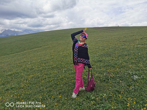 首先还是乘车在景区外的农家乐吃了旅游团餐,继续驱车进入景区。"喀拉峻"是哈萨克语,"喀拉"有深色、浓郁和辽阔的意思,"峻"形容茂密的样子,从字面上理解,"喀拉峻大草原"可译为苍苍莽莽的草原。所以这里是逐步攀升的典型的高山五花草甸天然大草原,海拔在2000-3600米之间,东西长89公里、南北宽32公里,总面积达2848平方公里。降水丰富,气候凉爽,土质肥厚,生长有上百种优质牧草。这里有峻秀雪山、草原风光,还有森林峡谷,景色多样,层峦叠翠非常俊美。我们乘坐大巴依次停靠景点游览,由于高山峻冷衣服穿的有点少,许多景点都没有去。只是在连绵起伏的丘陵草原、雪山、天空为背景,拍了一些照片,非常漂亮峻秀深邃。只是花季未到,本该是五彩野花遍布的开阔草甸,却星星点点的散落在大草原上,不过还是非常漂亮的。