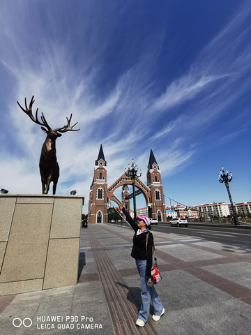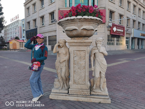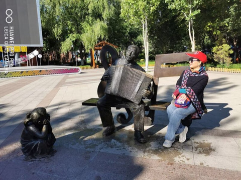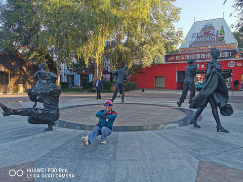 D16、早饭后,漫步城市的大街小巷,感受着边陲小城不一样的异域风格。不知不觉来到了中俄老码头风情街,俄式的建筑、俄式的美食、休闲的小木屋,还有俄式的雕塑似乎是向人们讲述着他们有趣的故事,依河而建更显情调,漫步观赏都非常惬意。