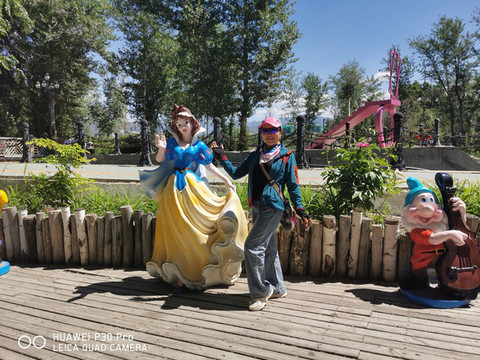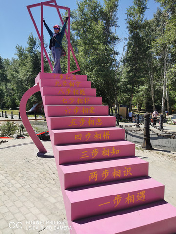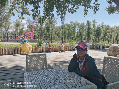 在客运站附近人均60元吃过午饭,行李在此寄存,打车13元到达桦林公园。这是阿勒泰人的休闲胜地,位于市区的西北角、克兰河上游的一处河漫滩地带,地势较平坦开阔,克兰河水将其分割为六个小岛,形成了林水相间的秀丽景色。海拔910米左右,总面积1.5平方公里。公园主要以天然桦树为主要景观,青杨次之,林间杂生有野蔷薇、绣线菊、野刺玫等10多种灌木,总面积52.5公顷。桦林公园与一般的人造公园不同,它依山傍水,自然林木、河水、花草融为一体。林下及空地生长有萎陵菜、野薄荷、草昧、白三叶草、红三叶草、草木樨、黄花苜蓿、黄蒿、白蒿等各种草本植物,在低尘湿泽处生有菖蒲、芦苇、莎草、苔藓等。目前园内要比外界温度低2~4℃,在亭亭立的白桦挥树下,芳草如茵,溪水潺潺,林间百鸟啾啾、鱼儿游于浅水。游人是很多景色迷人,一些别具一格的搭建物,和游览项目,如观景车、花语情廊、情侣梯、荡秋千,还有酒吧、咖啡、冷饮屋等等,与蓝天相映成辉,别有一番情趣,让人流连忘返。