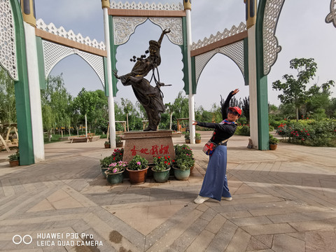 D3、人均8元吃过早饭后,乘公交车2元来到城市东郊5公里慕名已经的“香妃园”景区。这里免费参观,占地面积300余亩。建筑风格以民族特色和现代元素相融合,分别从故里、故居、故人三个方面讲述了香妃从出生到去世,从喀什到北京,从香香公主到万千宠爱于一身的传奇故事。
