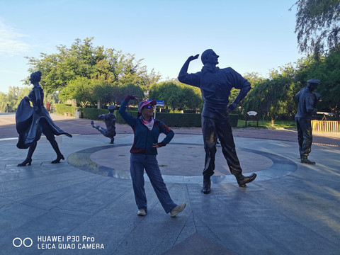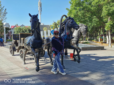 下午骑行来到市内的人民公园游览,这里树木参天绿荫蔽日,草坪如毡溪水潺潺,歌声绕梁舞姿优美,是市民休闲娱乐的好地方。人民公园始建于1953年,靠近市委和家属院,是喀什的第一个公园。公园占地24公顷,园内种植有50余种树木,有26万余株,花卉40余种,800多个品种,全园花木覆盖率达96%。园内曲径小道总长4000余米。公园对面市委前面的毛主席雕像依然神采奕奕恢弘无比,“为人民服务”非常醒目怡人。