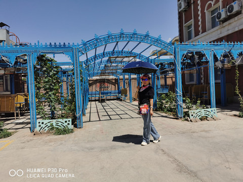 走进喀赞其街区大门右手就是清真大寺,名曰陕西清真大寺,已经有近三百年历史了。其结构布局模仿西安化觉巷清真寺,具有中国传统的宫殿式砖木结构与阿拉伯装饰艺术相结合的建筑风格。可容1000多人礼拜,是西北边陲著名的清真寺。街区内有各式交通工具可以乘坐,马车、电动车、人力车等别具特色。初略游览后感觉有点累了,便乘车返回居住酒店休息了。