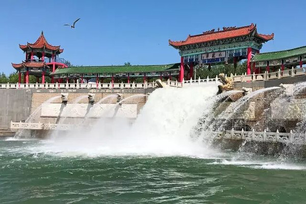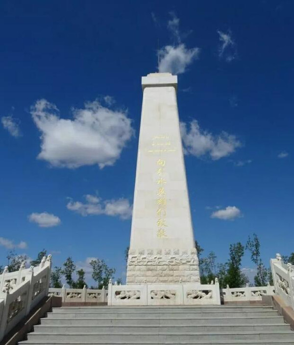 近处的引水工程纪念碑。