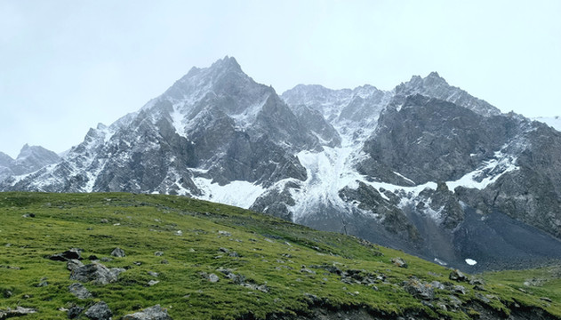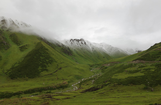 7月6日终于踏上了独库公路。各种宣传、各种视频早已充斥网络,让我有种已经走过了的感觉,说它是新疆大网红应该没人争辩。刚开始的一段景色平平,光秃秃的山,黑乎乎的沟。随着海拔的升高,雪山出现了,雪也迎面而来。雪山帽与下面的绿草无缝衔接,这是西藏的雪山无法比的。一缕白云绕在半山腰,山顶上云、雾、雪一片混沌,仙气十足。
