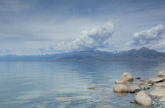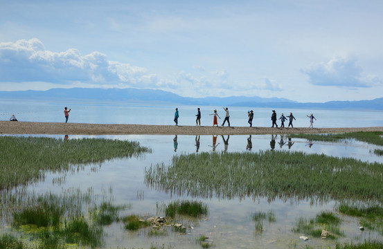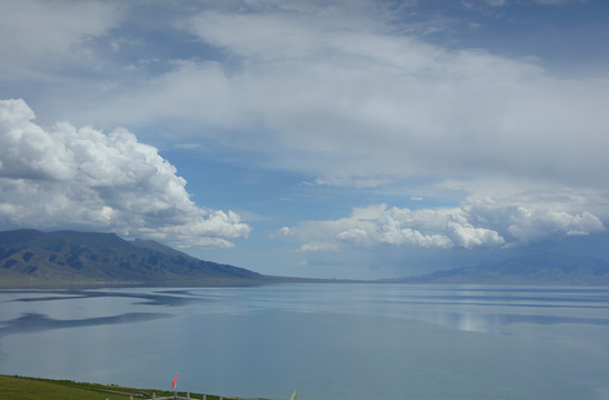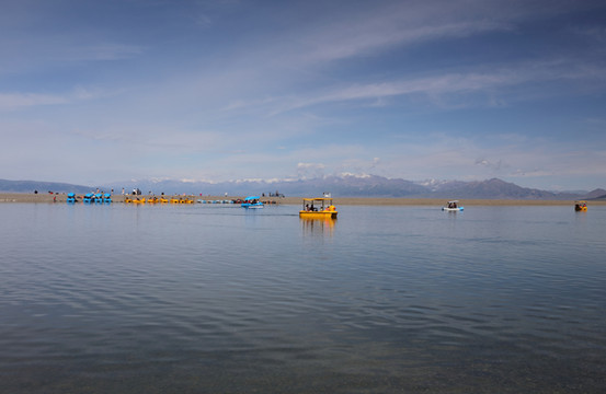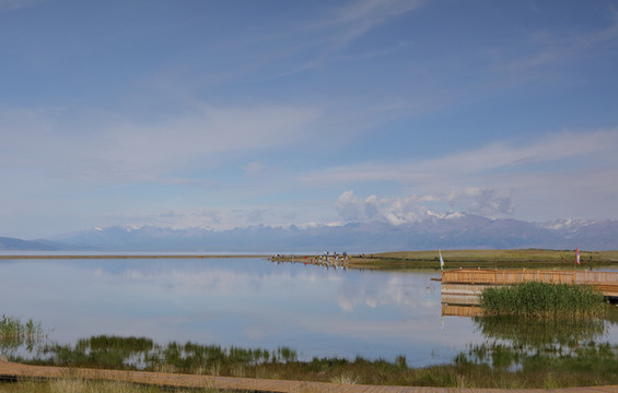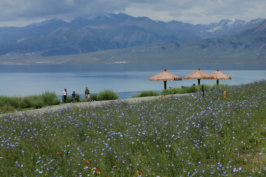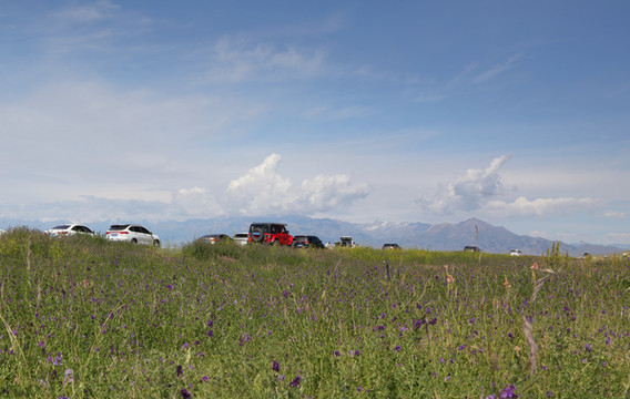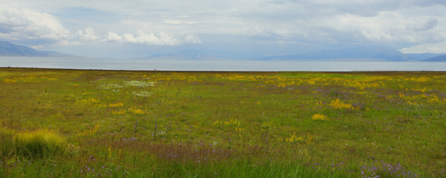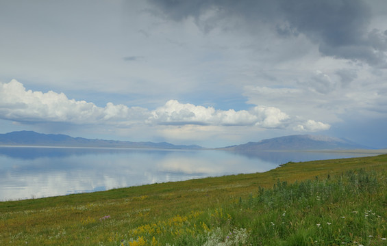 离开伊犁河谷向北到赛里木湖。很幸运是一个多云天气。之前一直查看天气预报,总是说有雨。当天早上看到霍城的晴天还是不太敢相信,生怕100公里外的湖区天气不同。赛里木湖是大西洋暖湿气流zui后眷顾的地方,因此被称为"大西洋zui后一滴眼泪"。海拔2073米,面积458平方公里,深度92m,透明度达12米,属中高矿化度水。赛里木湖原本没有鱼,1998年从俄罗斯引进高白鲑、凹目白鲑等冷水鱼养殖,2000年首次捕捞成品鱼,结束了赛里木湖不产鱼的历史。景区内和周边有很多餐馆挂着大字招牌“高白鲑”,我们要赶路没吃,结果发现离开这里再也没见过这种鱼。赛里木湖是美景大集结,湖泊、雪山、草甸、鲜花、蓝天、白云,沿湖走一圈,景色时时变化。进东门向北不远是月亮湾(富士东峙),看雪山的极佳位置,继续向北有一大片草原。过北门就是点将台(乌孙古冢),爬上二百多级台阶可以俯瞰赛里木湖。西岸是花的世界(克勒涌珠),很多新人在这里拍婚纱照。临近南门的松树头可观赏果子沟大桥,只是需要一小时才能爬上山顶。作为宣传点的天鹅只看到可怜的两只,极为遥远,还是一个眼尖的小伙子发现的,他反复核实确认是天鹅,其他人也就相信了。都说赛里木湖的蓝变幻莫测,多彩迷人。我看到的却是云的各种妖娆。从早上的蓝天白云,到中午的层云叠加,到下午的乌云翻滚,甚至还下了几滴雨。在云的影响下,湖水并非一味的蓝,而是蓝中杂糅着白和各种层次的灰。