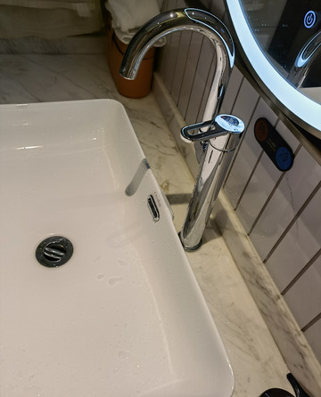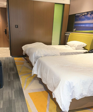 维也纳国际酒店是在富蕴新开的店,工作人员自豪地说他家是新疆最好的维也纳酒店。房间宽敞明亮,电器设备智能化,但“小度”有时不听话,可能是我沟通有问题。桌椅、沙发、茶几、行李架齐备,所有东西都有处安放。灯光稍暗。卧具干净,床和枕头舒适。卫生间布局合理,淋浴水冲。缺点是洗手盆与龙头空隙太大,水很容易洒到台子上,继而流到地上。440的价格不含早餐,但酒店送了早餐,主食和炒菜品种多,味道还可以。