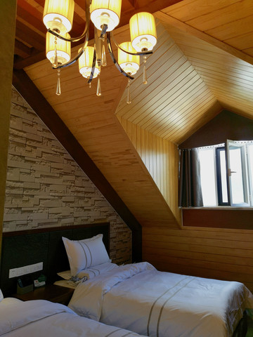 贾登峪的金泰度假酒店去年新开张,按酒店标准配备,毛巾厚实洁白,卧具干净舒适,有WIFI,有行李架,拖鞋、洗浴用品质量都挺好,还有润肤乳。淋浴用电热水器,两人相隔半小时就行,水量不很大但够用。没找到空调,但房间内温度合适,不知冬天怎样。只有一把椅子,桌子上没灯,有些不便。我不喜欢的是房间内铺地毯。400多的价格挺合算。酒店有餐厅,供应三餐,早餐很简单,还算可口。正餐品种不多,师傅手艺不错。