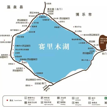 环湖一周95公里,自驾与坐景区车都是145一人,只是学生、老人乘景区车有优惠。赛里木湖景区有东、北、南三个门,东门游客最多,南门只出不进。我们从东门进出。网上订票后要取纸质票,以备景区内查票。停车场旁边有自助取票机。景区内除二十多个停车场,还有路边停车道可随时停车。卫生间很多,设施齐全,基本不用排队。
