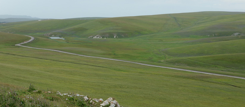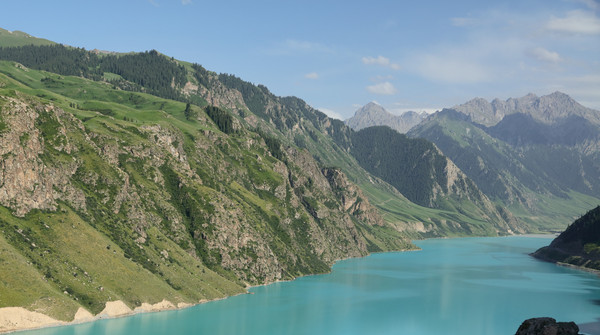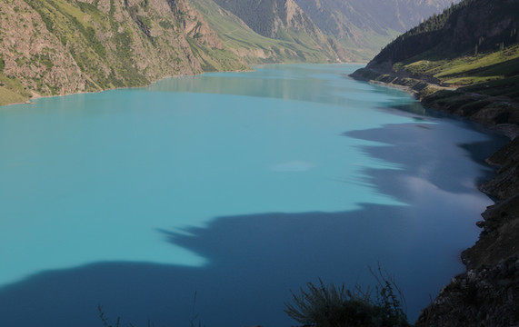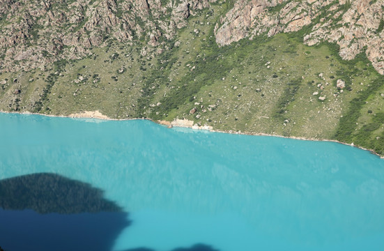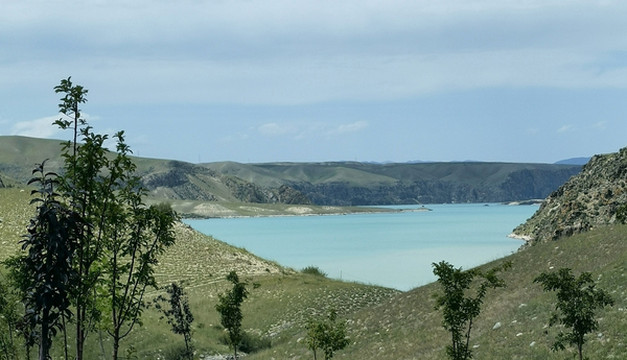 从昭苏县城向南有个玉湖,名符其实的碧绿。位置偏僻人不多,周边也没有其它看点,时间富裕可以一去。这里曾经有个山庄,现已拆除。半山腰正在盖个什么建筑,大概要开辟成景区。破烂的大门将汽车挡在外,人可以自由进出。进去后可以爬上山坡从高处纵览玉湖,也可以沿湖近距离赏玩。