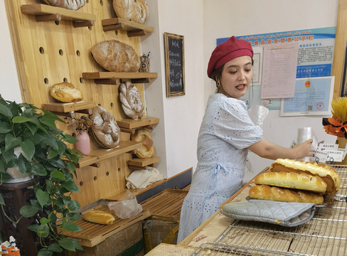 柳芭俄罗斯列巴是另一个引发我好奇的店家。这家店售货方式很奇葩。每出一炉面包,提前几分钟发号,等出炉了收费装袋,再发下一炉的号。一炉面包大的六个,小的十多个。卖面包的美女也不知道下一炉是什么面包,要去问面包师。买面包像摇号中奖一样,你要想买特定的面包就要耐心等。所以大部分人是赶上什么买什么。烤面包的香味实在太诱人了,小屋里围了一群人等着买。我挺幸运,等了十分钟左右等到了果料面包。面包松软香甜,果料充足。但我只能叫它面包,和我认为的列巴相去甚远。