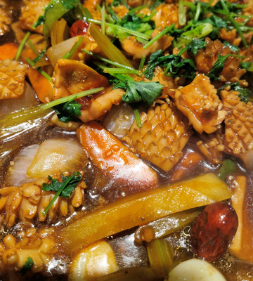 汇佳时代楼上的三汁焖锅味道挺不错。不知是我们来早了,还是现在生意清淡,晚上7点多到店只有一桌客人,服务员还在休息。吵醒他点菜,他想顾客所想,满足了我们所有要求,甚至还把我们带的水放冰箱里冰一下。他制作焖锅相当熟练,为我们做的素油鱿鱼焖锅火候味道都没挑儿。