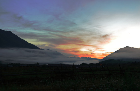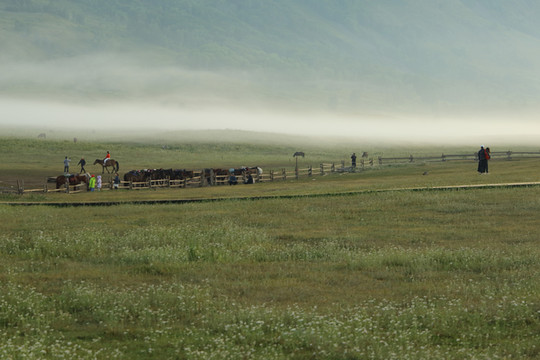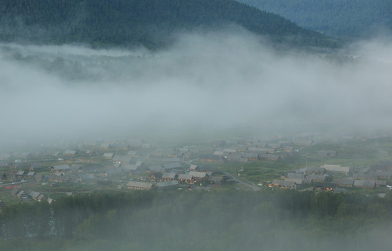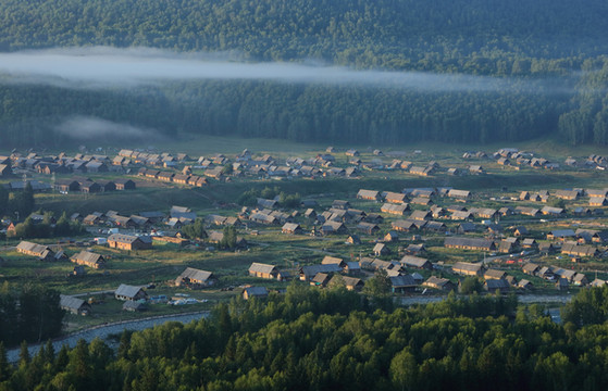 禾木号称zui美村庄,夏季是花的海洋,这里的蜂蜜品质高,日出晨雾是它的标志。雾是夜里聚集的,七点天亮后就能看到笼罩在村庄上飘荡不定的雾,一会儿完全遮盖了村庄,一会儿又扯出一个洞,露出几座房屋,一会儿整个村庄一览无余。夏天太阳八点左右越过山头照进禾木,随着太阳的升高雾慢慢散去。所以要拍摄整个过程就要七点到达村北面的山上,爬山约需半小时。
