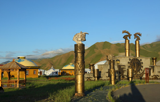 再走更加平坦,大片的草原,成群的牛羊,狂风吹得乌云翻滚,不时有雨袭来,凉意隔着车窗浸入身体,没想到我们此行zui南端的巴音布鲁克竟是zui冷的地方。当地人说这两天降温,夜晚也就4-5度的温度。天气太糟,我们只好先入住再去吃饭,没心情花钱去景区了。吃过饭天晴了,我立刻来了兴致进景区,无奈景区七点就不售票了,此时已七点半。无缘九个太阳,溜达到旁边的土尔扈特民俗村,面积挺大,这里除了毡房样式的标间还有吃饭和表演场所。没遇到土尔扈特人,倒是遇到了一个旅游团在办理入住。
