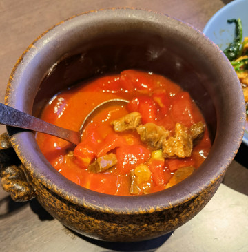 在克拉玛依吃了两餐。棉花绽放这个名字不像个餐馆,他家客人挺多,看来挺受欢迎。赶上古尔邦节,可能服务员有放假的,人手有些紧张。点菜上菜都比较慢。装饰很有民族特色,比较干净。给我们服务的是个高大帅气的维族小伙儿,聪明伶俐,善解人意。蒜烧鲈鱼很入味,又嫩又香。番茄牛腩的番茄好吃,汤汁浓厚,只是牛肉比较硬。菠菜面筋稍辣,但辣得爽。囊应该要不放孜然和辣椒的,太辣了。和田烤包子是当地人带我们去的,菜做得相当不错。可惜晚上吃不多。