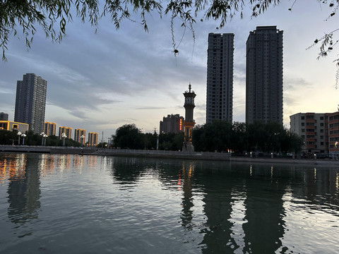 这是政府大楼,占据着孔雀河边的优越位置。