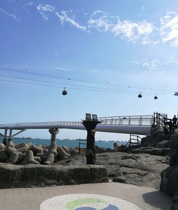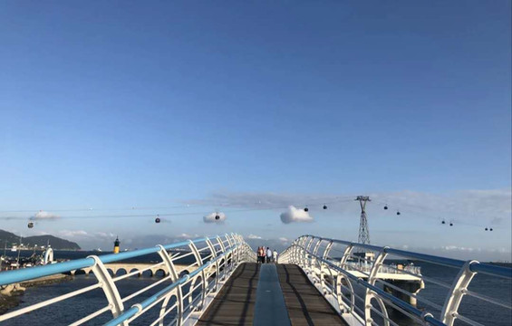 来松岛,一定要体验的是海上缆车,日落前去松岛搭乘缆车,建议买往返票,这样回程才能看到日落哦,缆车从松岛海水浴场东端的松林公园开始,直到西端的岩南公园,在缆车里从高空俯瞰蓝色的海洋,一切都变成了眼底之物。山海相连,水天一色,超级梦幻.