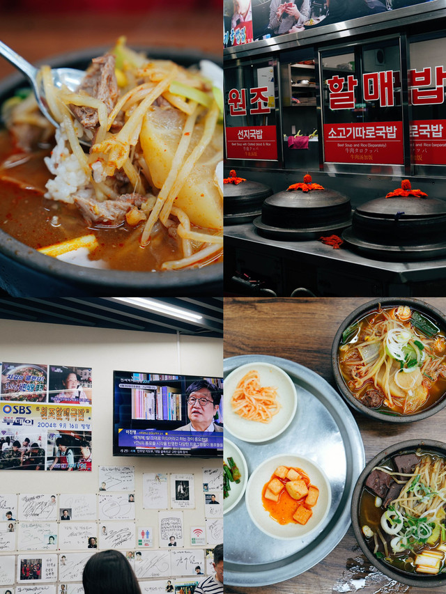 很多明星都有打卡这家店哦,还是24小时营业,菜都可以自己加,朋友吃了一盘人家的萝卜小菜���。牛肉汤饭是主打,分量很足,牛肉是大块大块的!能看到店里熬的超大一锅汤,很多本地人都当上午饭吃,好像5000韩元左右,记得带现金哦!吃饱可以溜达一下,离海边只有十几分钟而已。