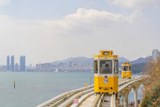 釜山是韩国第二大城市,那里有迷人的大海,好吃的海鲜,所以来釜山的第一天我就来到了海边。在海边有不少人带着椅子坐着聊天发呆,也有韩国人牵着小狗来散步,这样的慢生活真令人羡慕。几年没来釜山,变化真的很大,居然还有胶囊列车,彩色的车厢真是可爱又好看。
