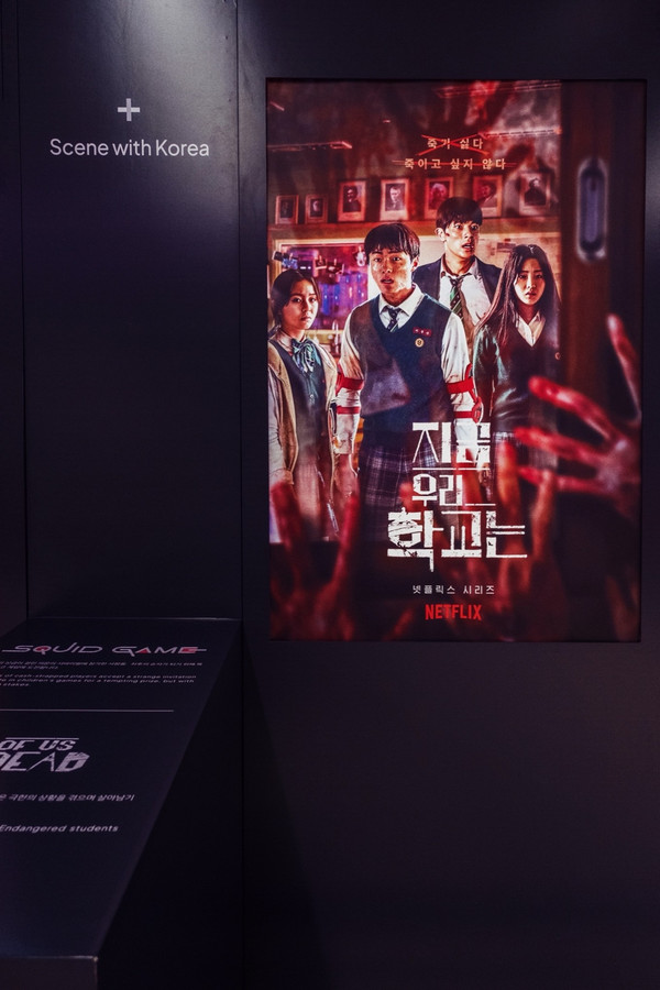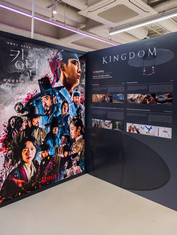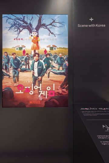 3楼是 韩国 电视剧、电影展和画展,大热的韩剧都能在这里找到踪迹,譬如小妖之前疯狂追过的《鱿鱼游戏》、《僵尸校园》、《王国》等