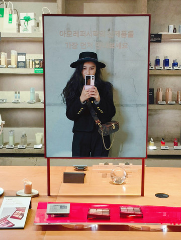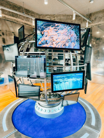 旅行第二日的“韩流时尚“内容始于圣水洞的SM旷野旗舰店——Kwangya,科技感十足!咱就是说,还得是SM,店面不太大,大屏幕一直在播放MV,展品有签名、应援棒等等,还有人生四格,可以选各个团的相框装饰,简直是追星女孩的天菜!