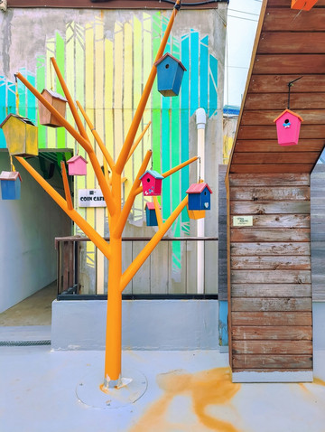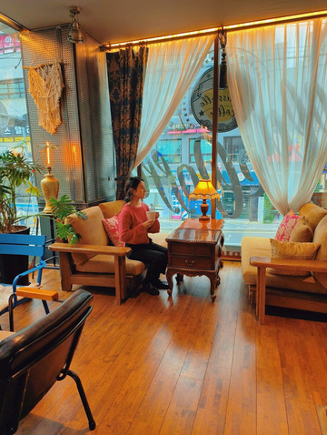 咖啡店一共有4层,一楼点餐和室外沙发躺椅区,二、三楼室内,四楼有一个室外 天台 ,可以俯瞰海景,景色真得绝绝子! 每一层风格都不同,拍照巨好看;