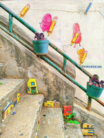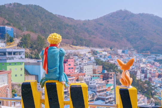 甘川文化村是真实居民居住的村落,却彩色房屋呈现阶梯式分布,斑斓又梦幻,如同童话场景,最有名的就是小王子和狐狸🦊的雕像啦