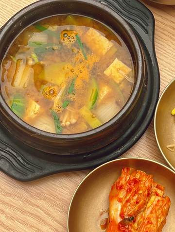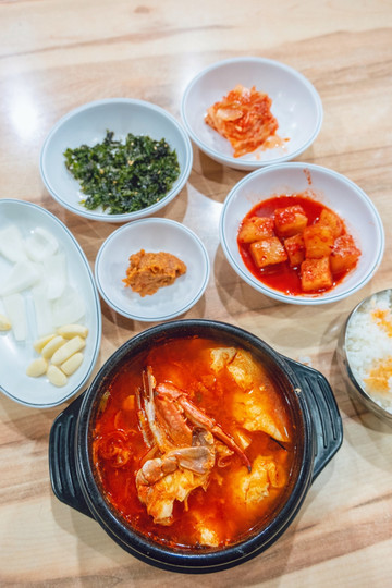 ▪️海鲜泡菜锅:海鲜、素菜,搭配浓郁的韩式辣酱和各式小菜,别提多鲜了