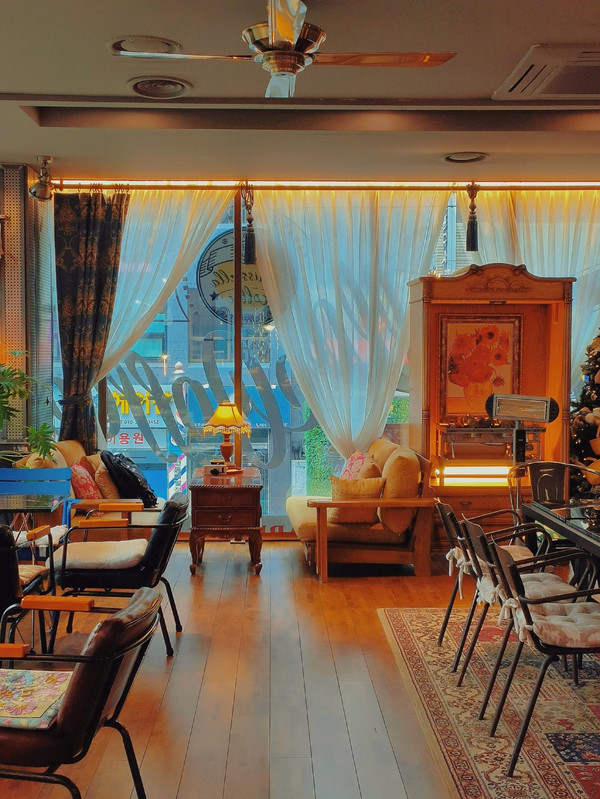 稍微有一丢丢远,位于半山腰,逛完草梁168阶梯后,需要爬一小段山才可以抵达奥,但是非常值得,是一家开在日式庭院里的咖啡厅,环境很日式。