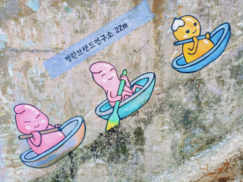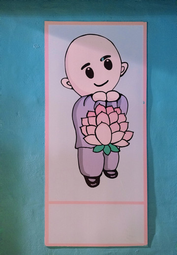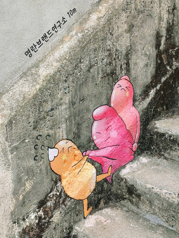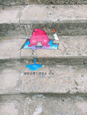 阶梯和两侧扶手的墙壁上有很多Q版的彩绘,可可爱爱的,还搭配有数字提示大家阶梯距离顶部的距离
