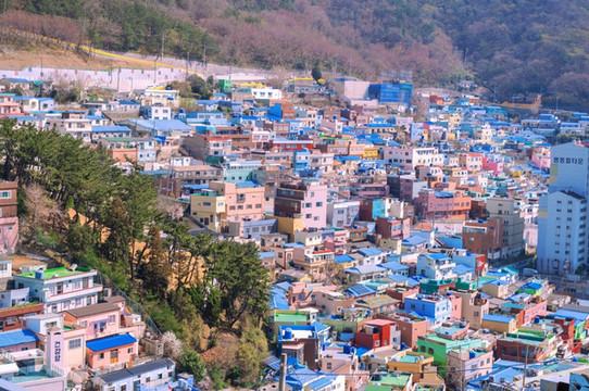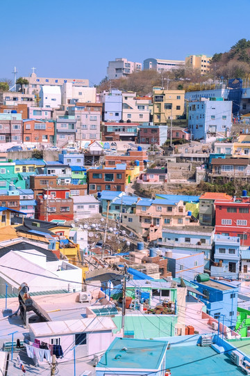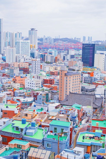 登顶后,有观景平台,可以俯瞰 釜山 港全景和居民的彩色房子;
