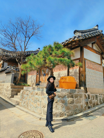 为了避开游客,小妖8点就到 安国 站啦!一出地铁,阳光普照,蓝天、白云、绿树,完全是漫画场景,一路上走走停停、很是惬意,步行5分钟就到韩屋村啦~