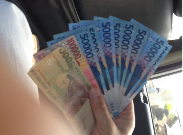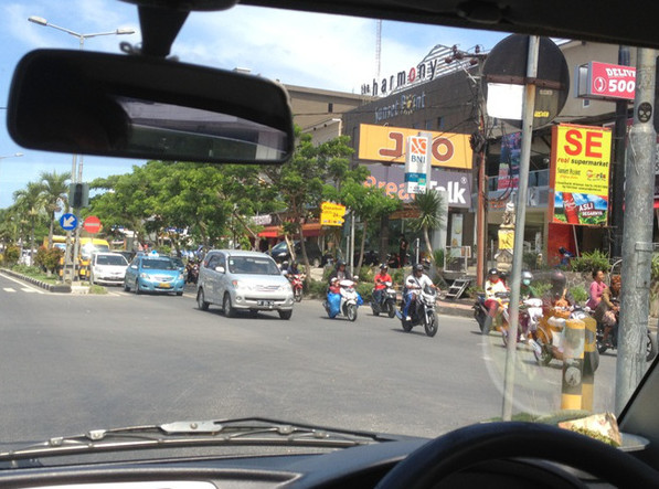 路边都是些小平房和小商铺,破破的感觉。但是好像都没啥生意的。路上超多的摩托车,真是一道风景线啊!我们让司机先带我们先去库塔区比较好的money changer点,换了500元人民币的卢比。特别有意思,拿着这些印尼盾,感觉像在玩强手棋啊!哈哈!