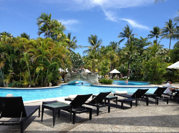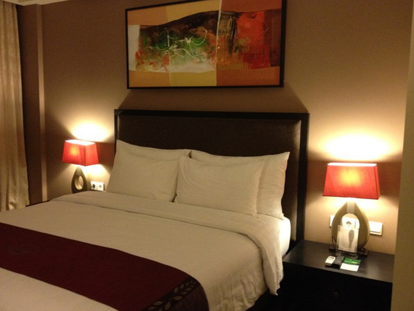 第一天:(10月5日)飞机晚到了半个小时,出了机场,打车去我们在巴厘岛住的第一个酒店,100 sunset 2 hotel。这是一个三星的酒店,地方虽小,但是五脏俱全啊!