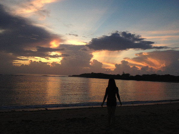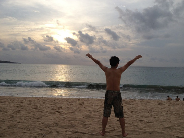 看着LG又玩了会,接着我们要去老公最向往的金巴兰海滩,一边看日落,一边享受烧烤龙虾大餐了。司机开车带我们来到一家沙滩边的饭店,我们挑了离海边最近的一排位子,由于我们到那里才4点半左右,所以饭店里人还很少。我们一下子被金巴兰沙滩的美丽所吸引了。
