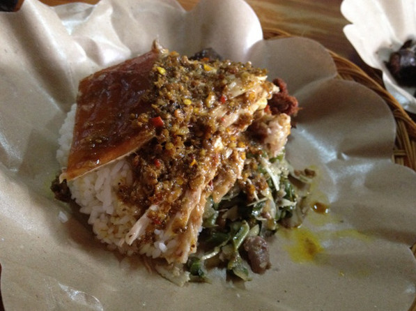 看了15分钟,我们就启程去下一个点,乌布皇宫+集市。看了很多网上的游记和攻略,都说乌布皇宫旁边的烤猪饭一定要尝一下。我和老公迫不及待的赶去吃烤猪饭了,唉!带着满心期待,没想到换来一个彻彻底底的“失望”!!!原来网上都是炒作啊!真的根本谈不上好吃,实在是太难吃了。我就吃了几口,就都给老公吃了。还好点的不多,老公也是为了不浪费,硬着头皮吃下去。那个椰子也不好吃,椰子汁不甜的,怪怪的味道。