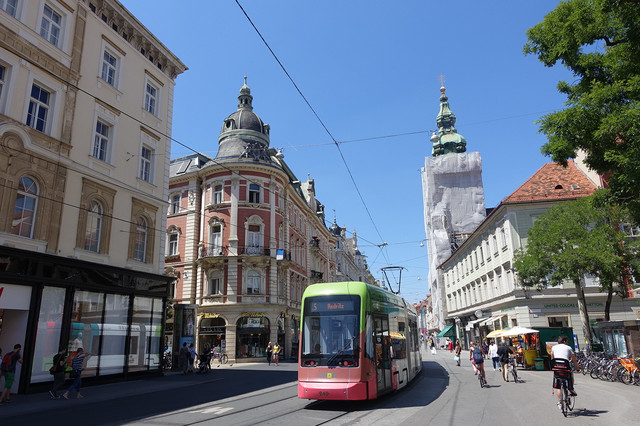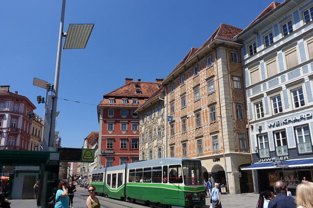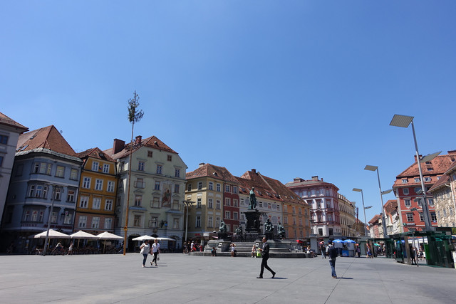规模仅次于维也纳的格拉茨是奥地利的第二大城市,除了汽车制造之外它也是奥地利的冶金、机械、仪器、造纸、酿酒工业中心和历史文化名城。这趟旅行时我才知道,这个在我认知和想象中应该非常现代化的城市,居然是有着一千多年历史的古镇,1999年被选入世界文化遗产。随处可见保存完好的文艺复兴式建筑,让整洁舒适的城市充满了浓浓意大利风,带有种淡然优雅的贵气。