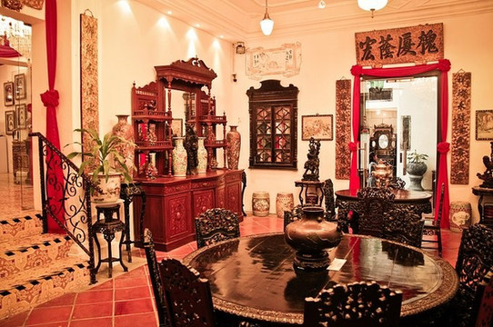 侨生博物馆许多类似这样的椅子、躺椅都开放给游客,除了那张古董鸦片床不能睡。东印度公司将鸦片这玩意带到天朝也带到了这里,历史就是这样,过去了,今天可以坦然地站在这里了解这一切。